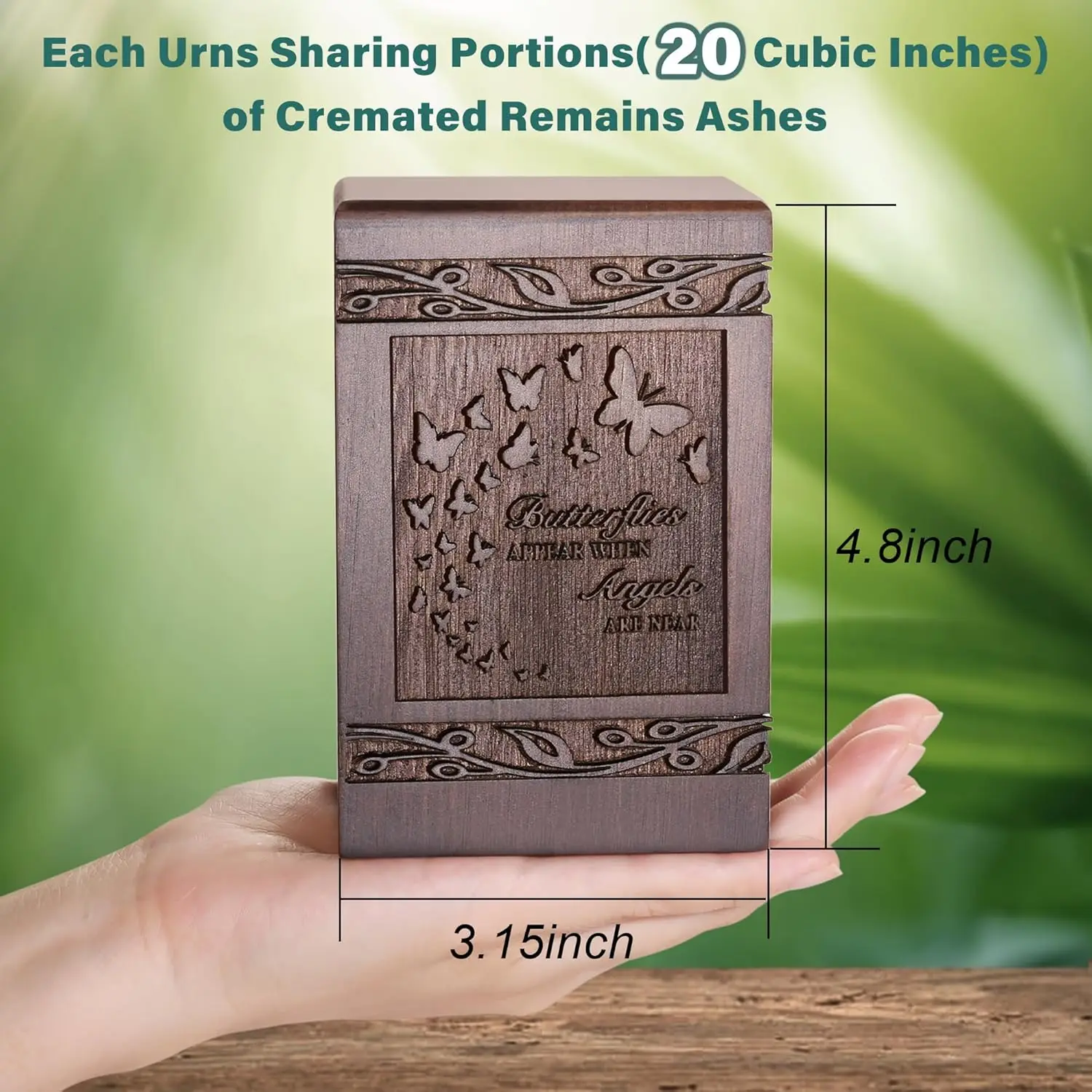 Intricate Symbolic Artistry: Detailed butterfly carvings offer a meaningful and graceful aesthetic, making this a beautiful centerpiece for home display or memorial services.