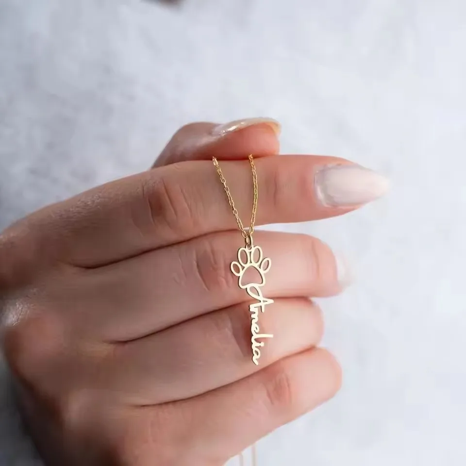 Sipuris Custom Paw Name Necklace – Personalized Pet Memorial
