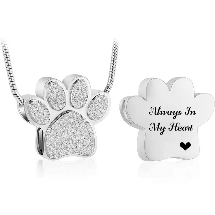 Symbolic Design: A polished finish paired with a delicate paw print, offering a subtle and stylish way to carry their presence with you every day.