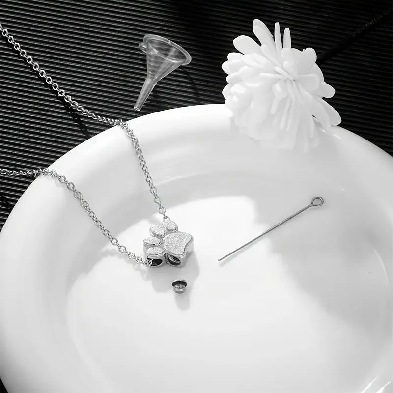 Keep the spirit of your most loyal companion close to your heart with this elegantly crafted Paw Print Keepsake Necklace. This isn’t just jewelry; it’s a tiny, private sanctuary designed to hold the symbols of a lifetime of friendship—be it a lock of fur, a pinch of sand from a favorite trail, or other small mementos.