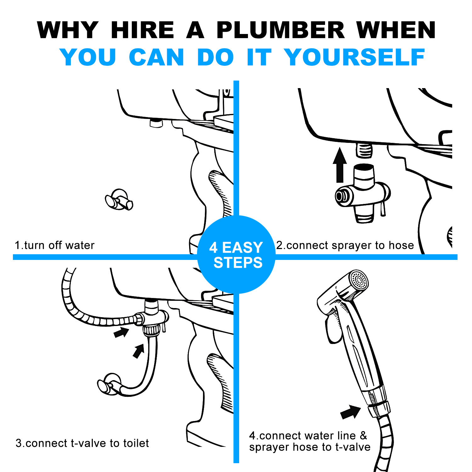 Quick and Easy Installation-Comes with the installation kit so you don’t have to buy anything else. You can use it as a toilet sprayer for cloth diapers,  including  Sprayer , Hose, Sprayer Holder (for wall or toilet side mounting), teflon plumbers tape and screw.